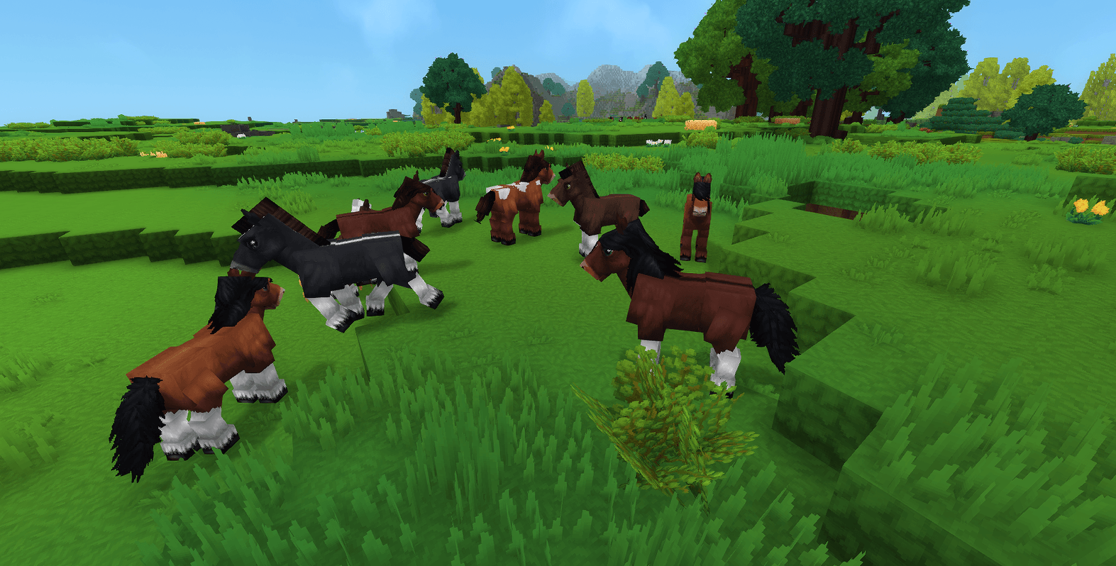 Adds 64 unique horse skin combinations to Hytale. Features custom animations for eating, sleeping, and running behaviors. Bring variety and personality to your horses.
