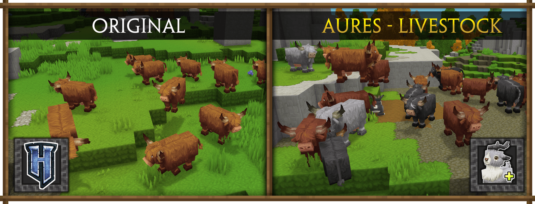 Aures - Livestock Skins adds over 150 randomizable patterns to farm animals in Hytale. Created by BlackAuresArt, this mod brings visual variety to every animal encounter.