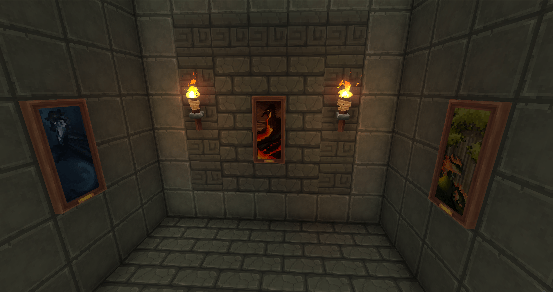Aures Paintings with Dragons adds over 50 hand-drawn paintings to Hytale featuring dragons and fantasy art. Created by BlackAuresArt, all artwork is original and can be switched by interacting with placed paintings.