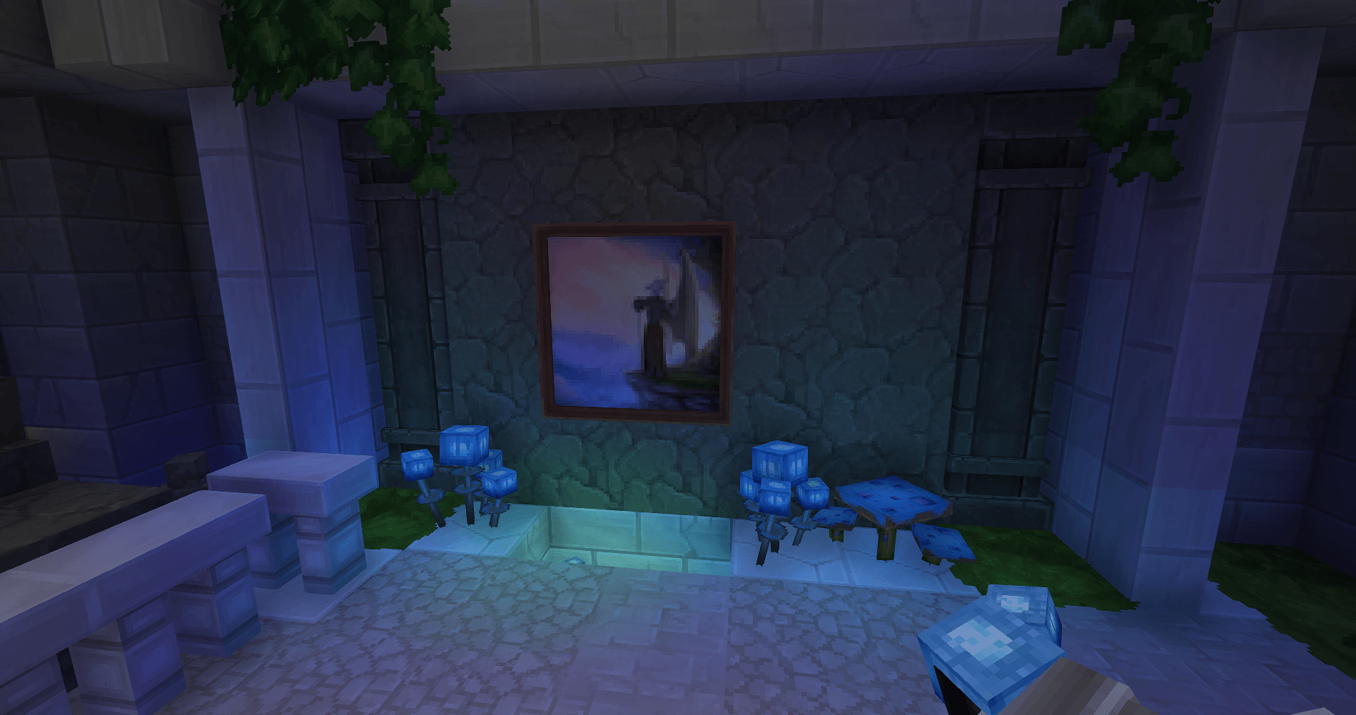 The mod adds a collection of original paintings that you can craft and hang on walls. Interact with any placed painting to switch between variants of the same size.