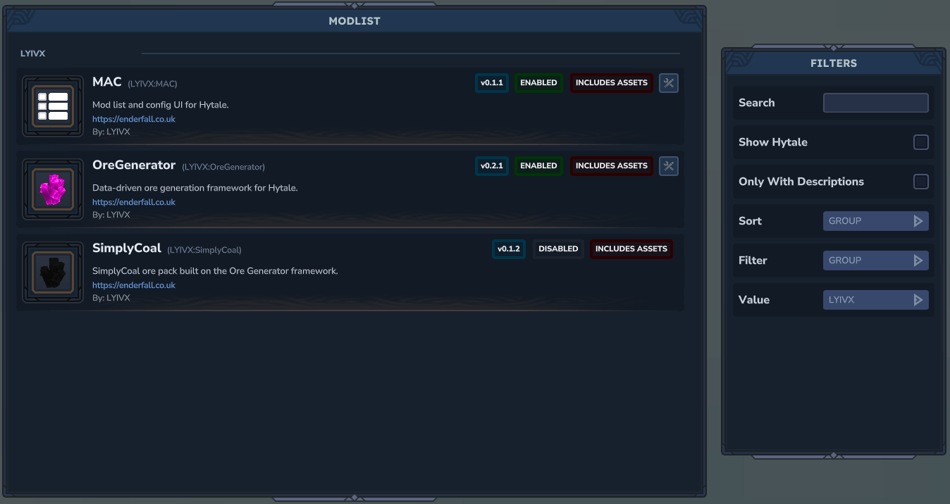 - Place it in your Hytale mods folder (includes asset pack)