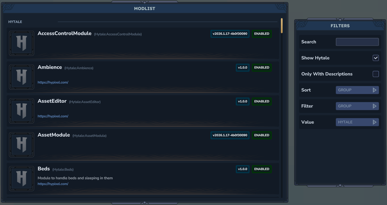 An in-game mod list with rich metadata and a config editor that plugins can hook into. Features sorting, filtering, search, live config reloads, admin controls, and permission nodes for server management.