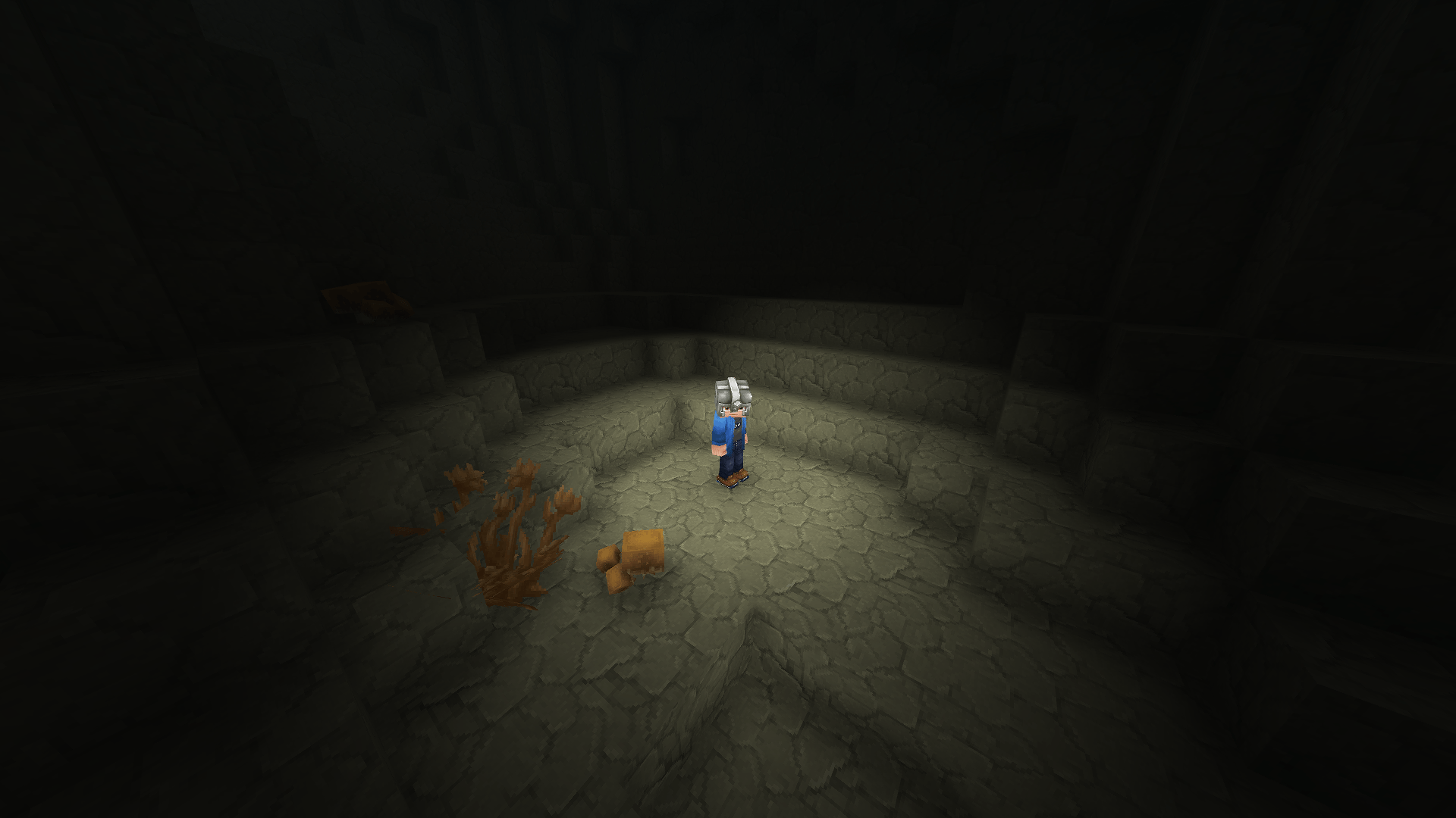 No more juggling torches while mining. Wear a helmet and always have light where you look.